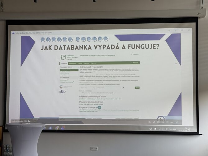 Další část programu patřila představení Databanky vzdělávacích programů. Prezentace Mgr. Pavlíny Lišovské z Knihovny Jiřího Mahena nám ukázala možnosti, jak knihovny mohou pracovat s nabídkou vzdělávacích aktivit a jak tyto programy efektivně zapojit do spolupráce se školami.